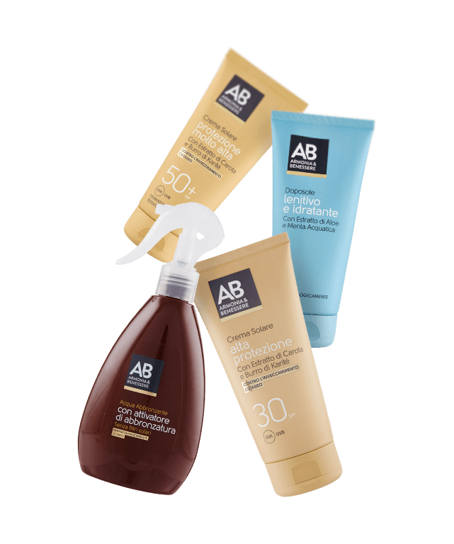 Oggi puoi esporti tranquillamente all’aria aperta in tutta sicurezza grazie ai solari Armonia & Benessere, studiati per tutelarti dagli effetti nocivi dei raggi UV. L’offerta è vasta e differenziata, per permetterti di trovare la soluzione giusta per ogni tipo di epidermide e scegliere tra diverse modalità di utilizzo, dagli spray alle creme, con una vasta gamma di fattori di protezione.