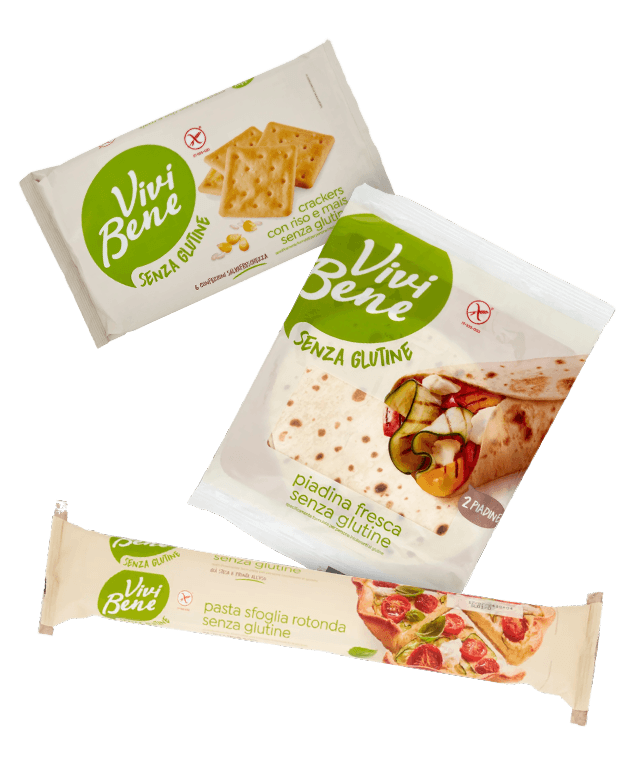 Vivi Bene Senza Glutine è una linea dedicata espressamente a chi non può mangiare alimenti che contengono questa proteina del grano. Comprende infatti prodotti specificamente formulati per celiaci, quindi privi di contaminazioni e registrati presso il Ministero della Salute. Questi alimenti contribuiscono a rendere più facile e piacevole la vita delle persone celiache, ma anche di chi ha problemi di sensibilità al glutine. Oltre al marchio Vivi Bene Senza Glutine, le confezioni sono contraddistinte dalla Spiga Barrata, che individua i prodotti per i quali sia stata accertata l’idoneità al consumo anche dall’Associazione Italiana Celiachia. La linea comprende principalmente i preparati che sostituiscono gli alimenti a base di grano, come pasta, pane, farina e prodotti da forno, ma si arricchisce anche di altre proposte, tra cui gelati e surgelati.