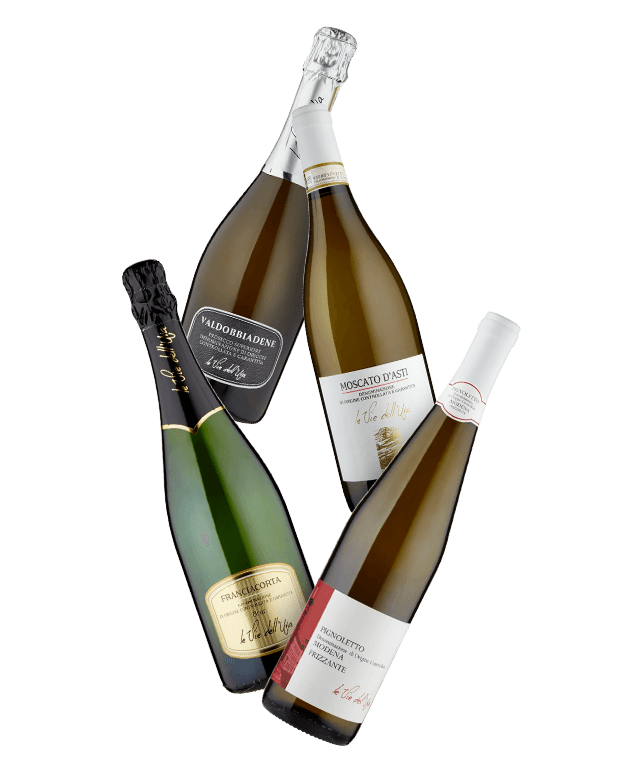 I pregiati vini bianchi della linea Le Vie dell’Uva offrono tutto il meglio della vinificazione in bianco nostrana. Dal sempre più amato vino spumante Valdobbiadene Prosecco e il classico Franciacorta a vini meno noti al grande pubblico ma conosciuti dagli appassionati e da chi frequenta l’enogastronomia italiana, come il Pignoletto di Modena.