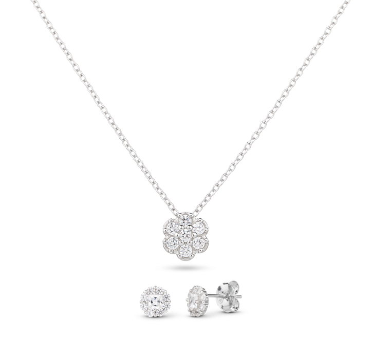Orecchini luminosi e raffinati, e collana con pendente a fiore. Gioielli perfetti per completare il look quotidiano o impreziosire occasioni speciali, aggiungendo un tocco di stile ed eleganza. Materiale: ottone rodiato Dimensioni (fiore orecchini): 3x3 mm Dimensioni (fiore collana): 7,3 mm Lunghezza (collana): 38 + 5 cm